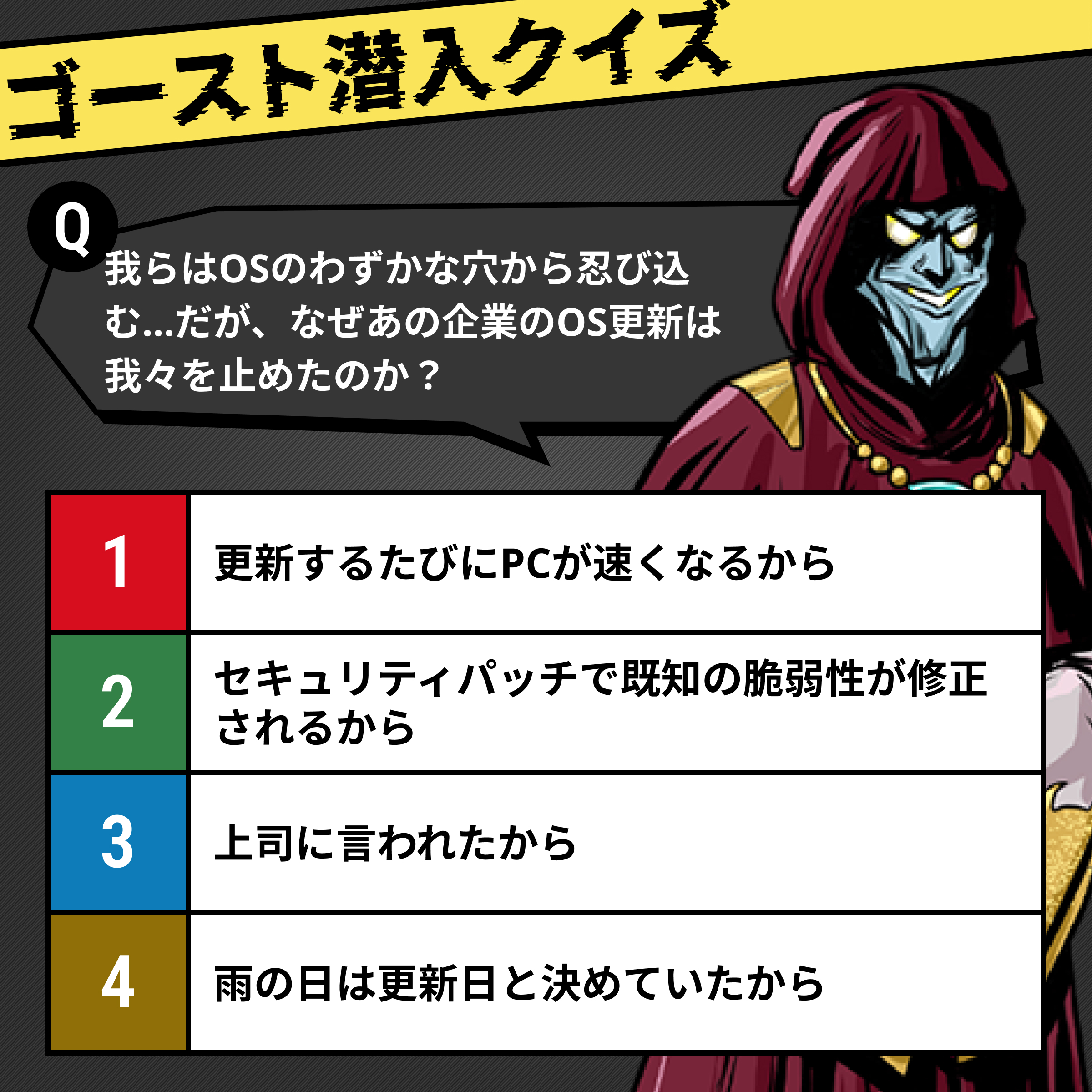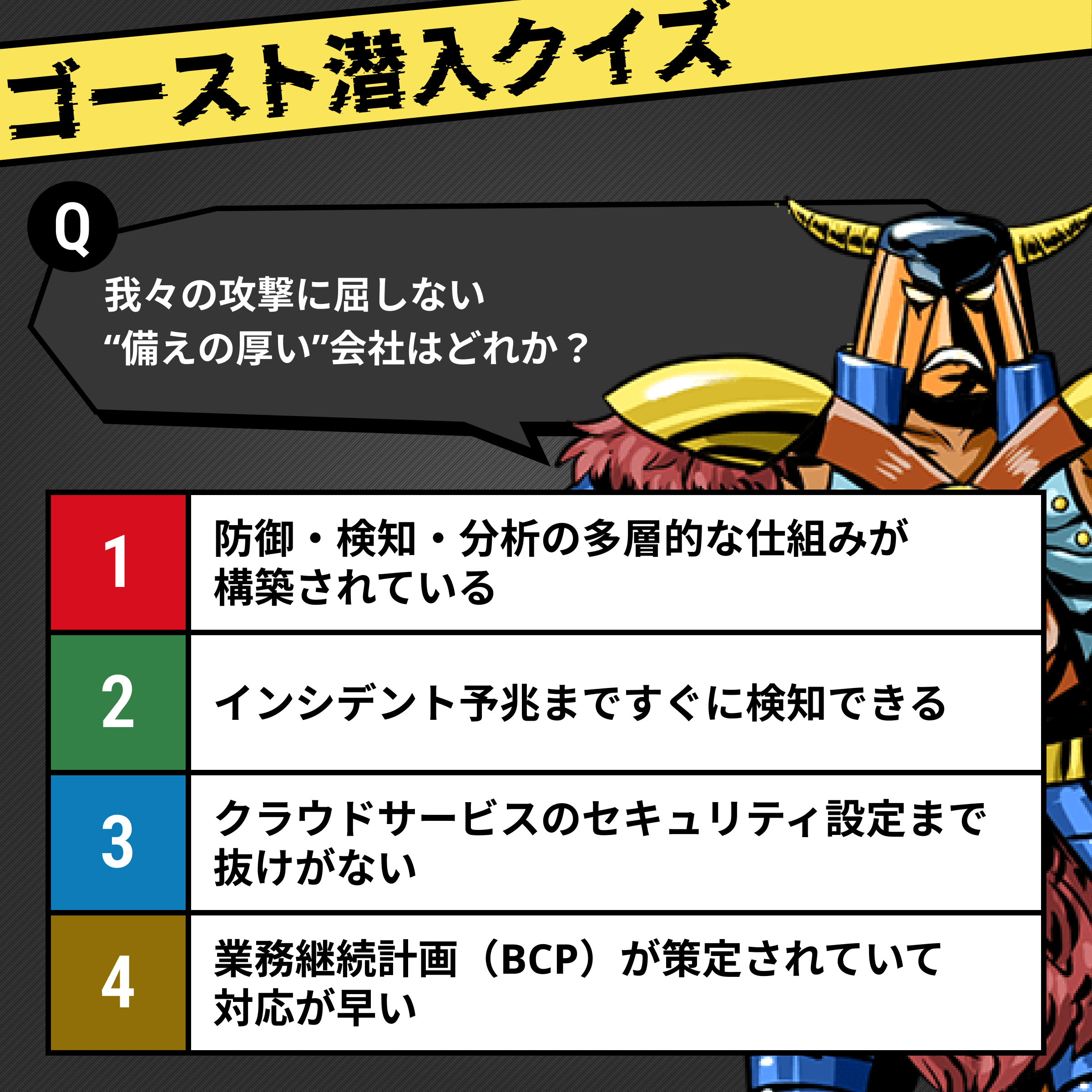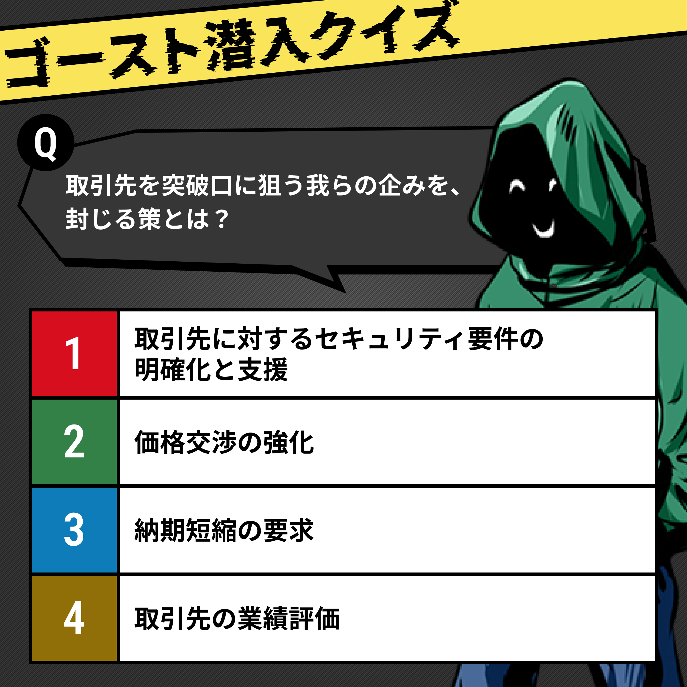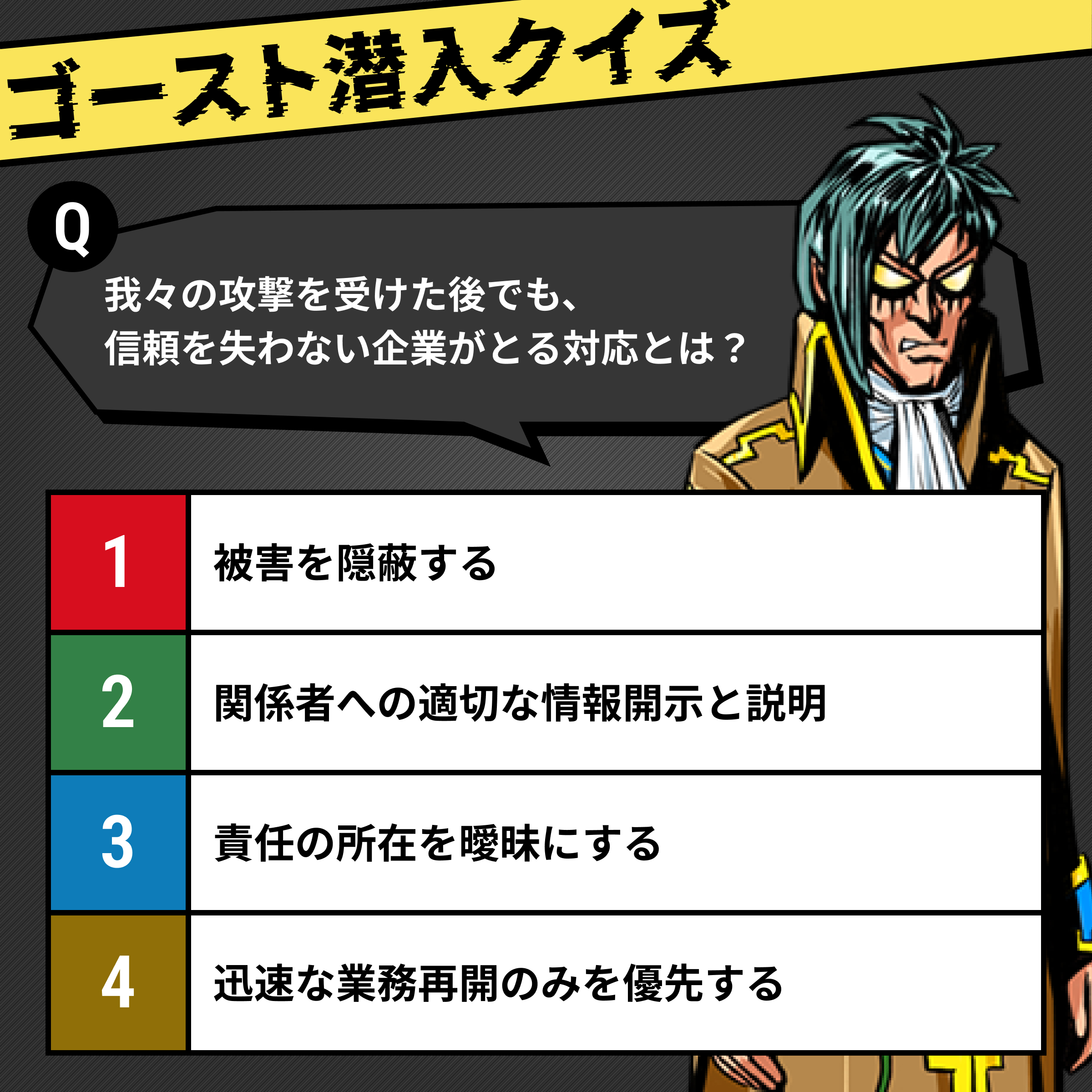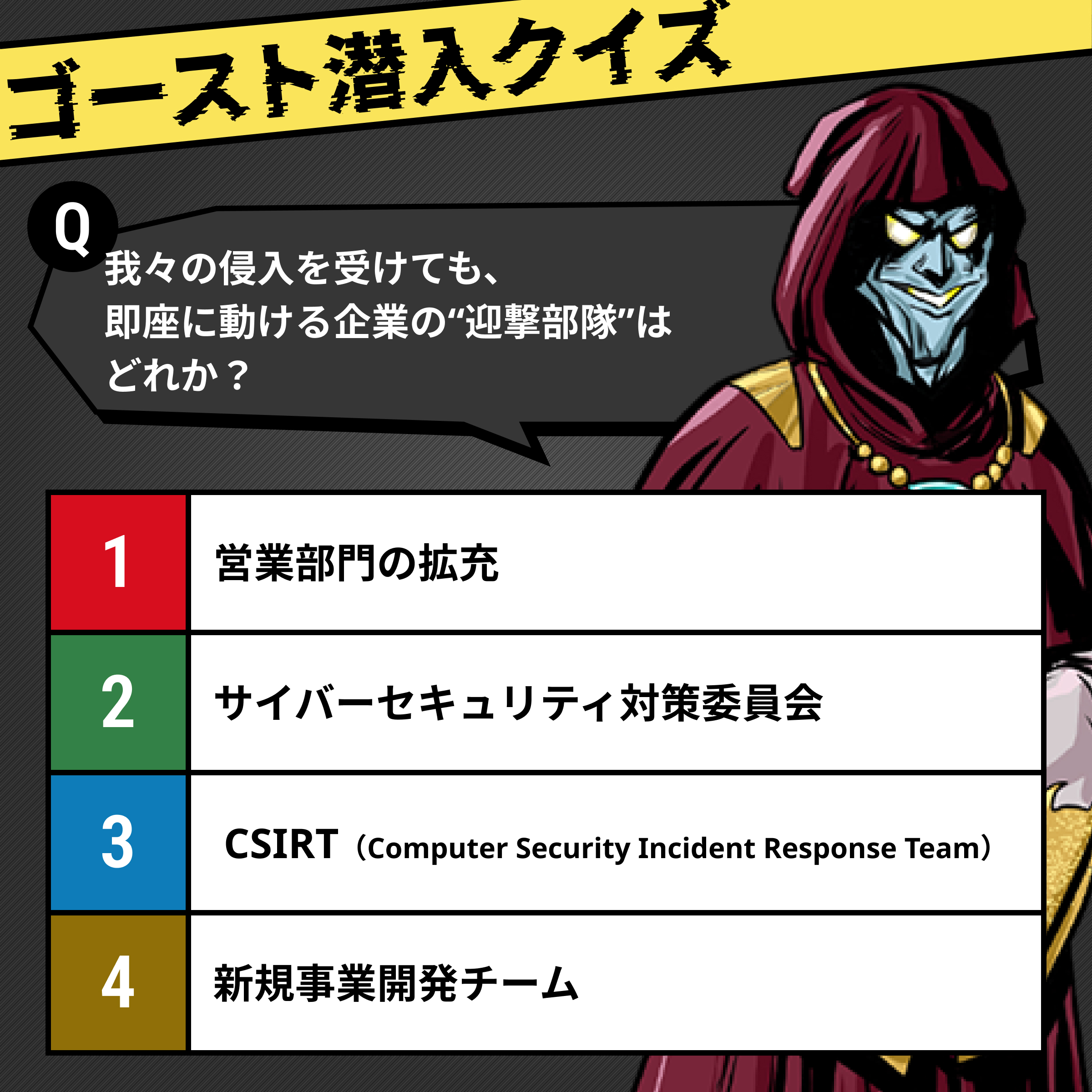 我々サイバーゴーストが最も好むのは、経営者が無関心な企業だ。対策が他部門任せだと、そこに隙間が生まれる。しかし、経営者がリーダーシップを発揮すれば、我々の侵入も一筋縄ではいかなくなる。